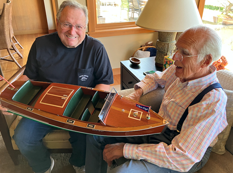 Bill – Roger and John, your boats, both full scale and miniature, are fine examples of marine craftsmanship. They are emblematic of a striving for excellence that was also characteristic of your professional careers. This I know from my personal experience in, over the years, working collaboratively on patient care with both of you. I sincerely thank you for taking the time to share, with me, and with our Department alumni, this story of two boats and two friends.