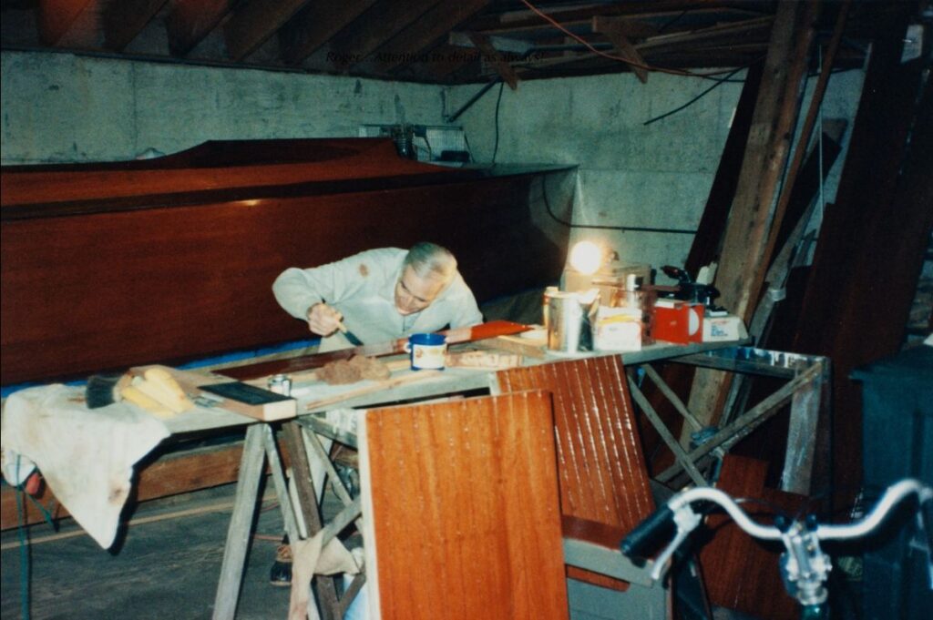 Roger – Bob’s closest boyhood friend was William Garden who grew up to become the renowned Canadian marine architect and yacht designer. Perhaps it was because young Bill Garden so admired Bob’s woodworking skills, even then in his youth, that he nicknamed him “Teakwood”. So as the restoration neared completion and our family turned to the question of naming the boat, there was little question what it would be. Teakwood was the unanimous choice!